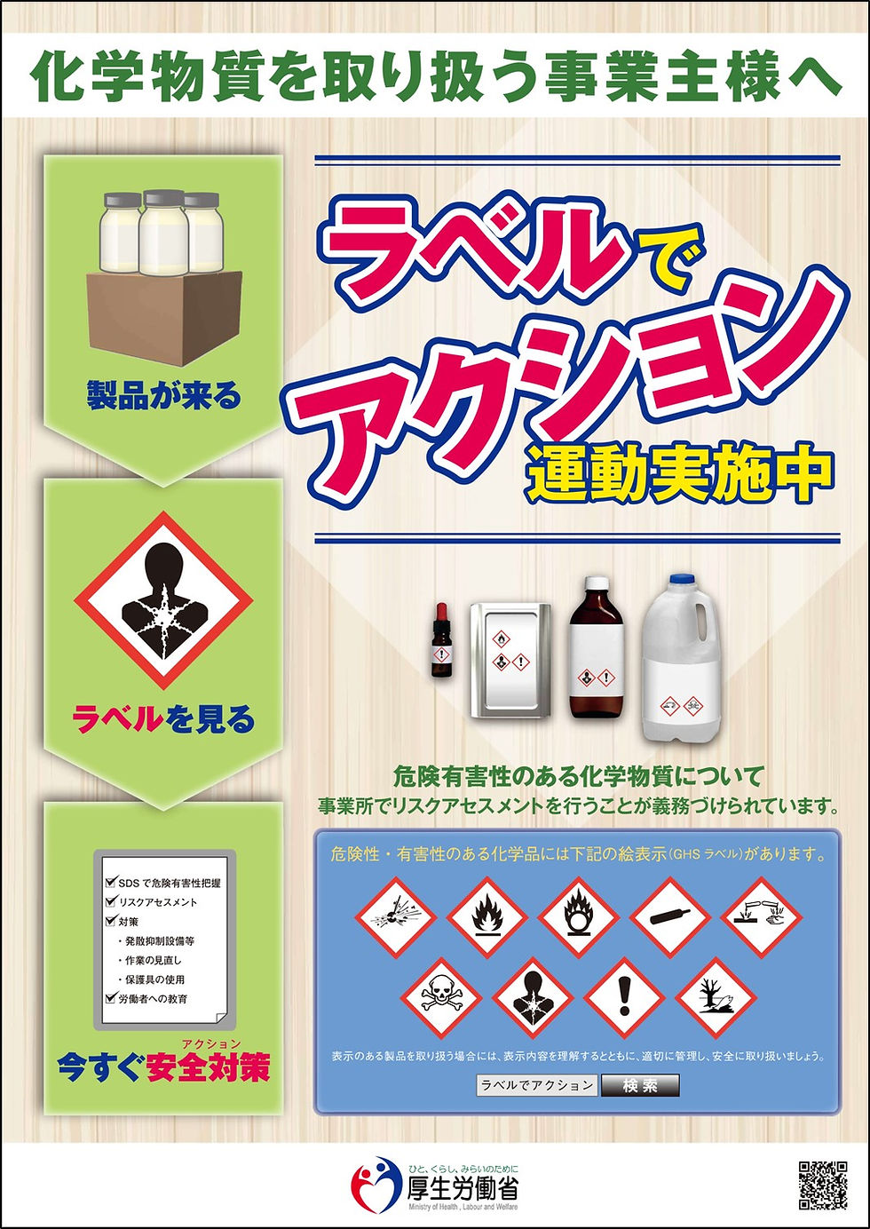 労働者それぞれがラベル表示を理解し、リスクに応じた対策を取れるよう、教育を行いましょう。